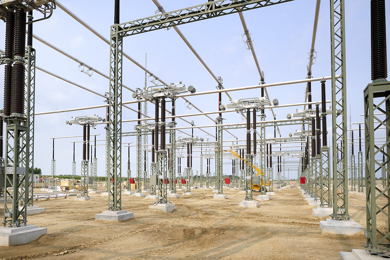 The substation near Stilow was built as an air-insulated switchgear. This means that normal air is used as the insulating medium between the live and de-energised parts within the installation. Such air-insulated switchgear require enough space to create sufficient distance and thus enough insulation between the technical equipment.